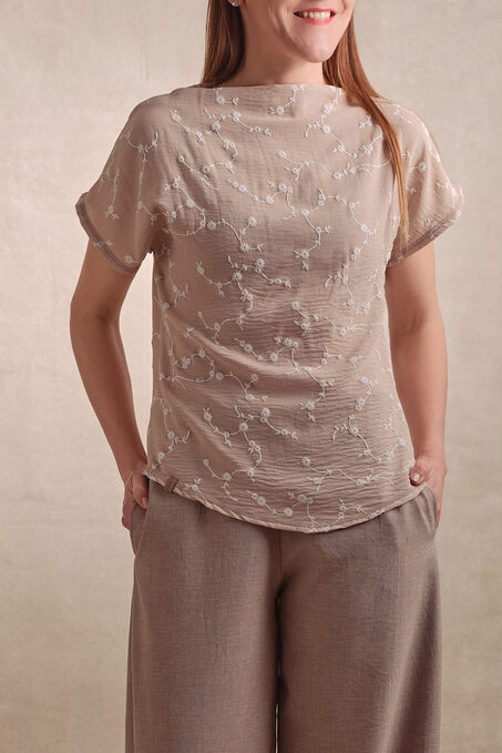Halenka Saona je ušitá z lehkého bavlněného materiálu s jemným tiskem kytiček.