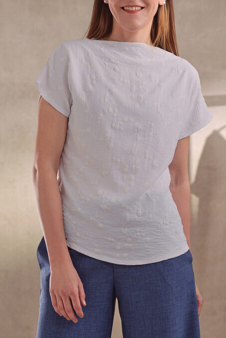 Halenka Saona je ušitá z lehkého bavlněného materiálu s jemným tiskem kytiček.