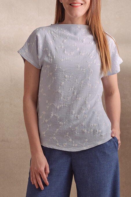 Halenka Saona je ušitá z lehkého bavlněného materiálu s jemným tiskem kytiček.