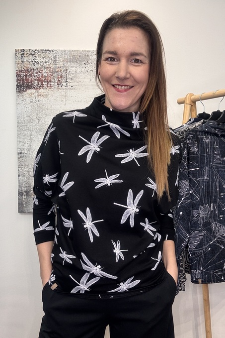 Lehká mikina Kea bavlněná černá s vážkami