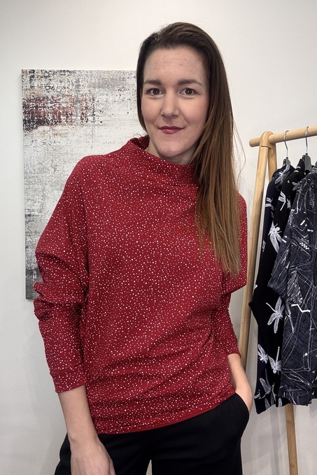 Barva: cihlová červená s bílými puntíčky