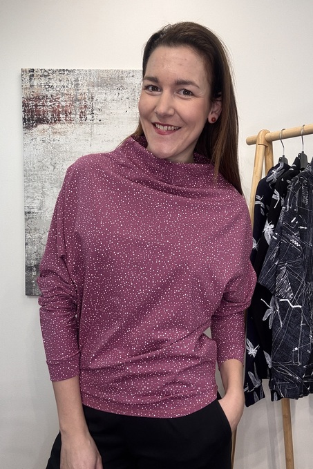 Barva: růžová mauve s bílými puntíčky