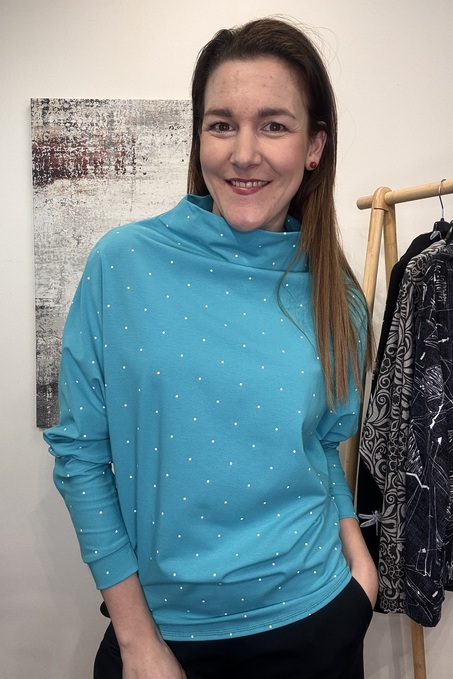 Lehká mikina Kea bavlněná tyrkysová s puntíky