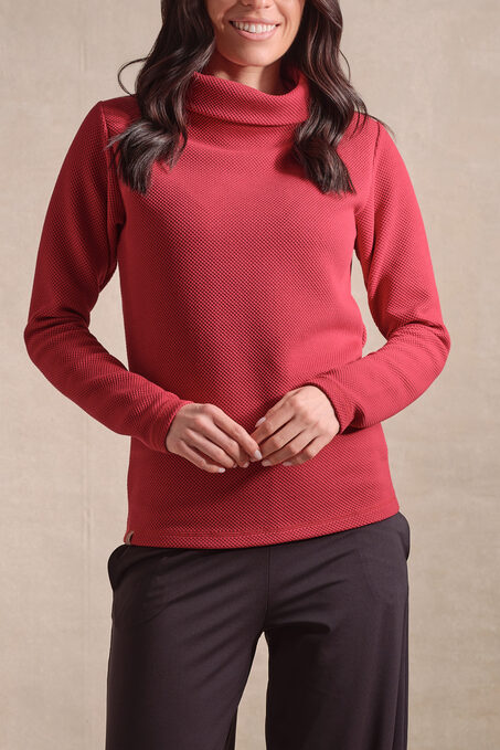 Strukturovaný elastický úplet s efektem 3D je velmi kvalitní materiál. Díky elastanu je hodně pružný a příjemný na nošení. Z rubové strany je materiál hladký a dobře se obléká.