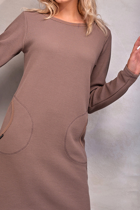 Tyto podzimní šaty jsou vyrobeny z kvalitního pružného úpletu s jemným 3D efektem, který zaujme na první pohled.